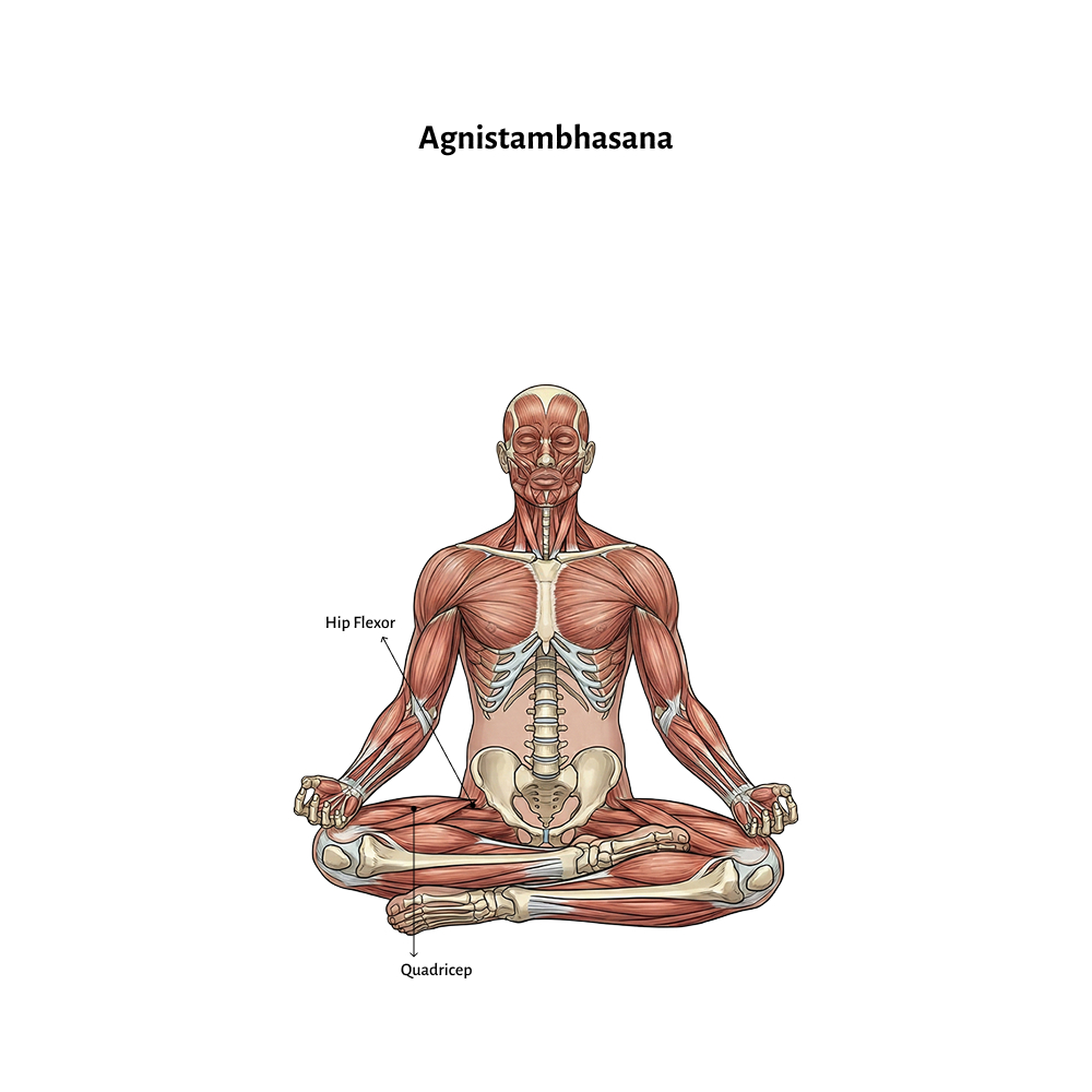 Agnistambhasana अग्निस्तम्भासन, also known as Fire Log Pose or Double Pigeon Pose, is a deep hip-opening yoga posture. Its name comes from the Sanskrit words “Agni” (fire) and “Stambha” (log or pillar), as the legs are stacked like logs and the pose can create a “fiery” sensation in the hips.