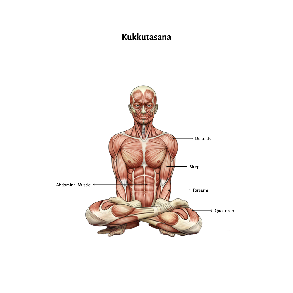 - Strengthens Arms and Shoulders: Kukkutasana places the entire body weight on the arms, which intensely strengthens the wrists, forearms, biceps, triceps, and shoulders.