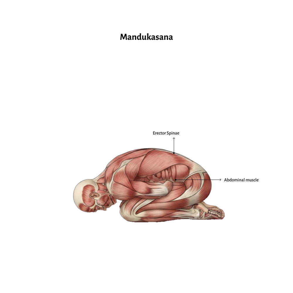 Mandukasana (मण्डूकासन), or Frog Pose, is a group of seated and kneeling yoga poses that get their name from the frog-like shape of the body. There are a few variations of this pose, but the most common one is a deep hip opener that stretches the inner thighs and groins.