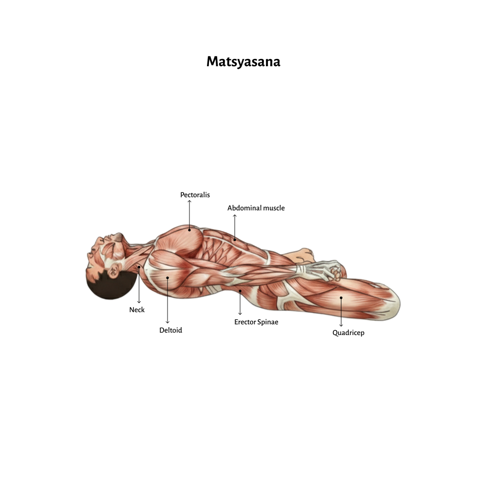 Matsyasana gently massages the abdominal organs, which can help stimulate digestive function and relieve issues like bloating and constipation. - Reduces Stress and Anxiety: