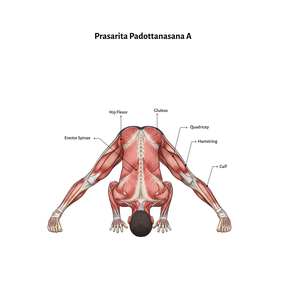 Prasarita Padottanasana engages and stretches a wide range of muscles and joints: