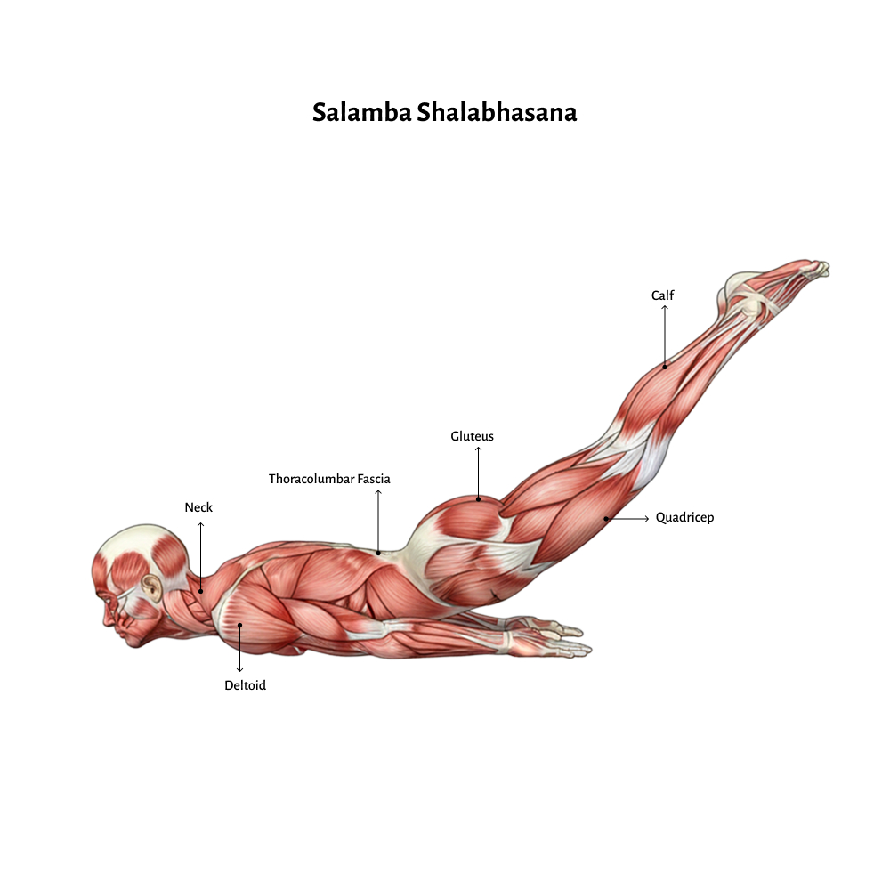 Shalabhasana (शलभासन), or Locust Pose, is a prone backbend in yoga that strengthens the entire back of the body. The name comes from the Sanskrit word “shalabha” (locust) and “asana” (posture). In this pose, the body resembles a locust at rest, or about to take flight, which is why it is often called Locust Pose.