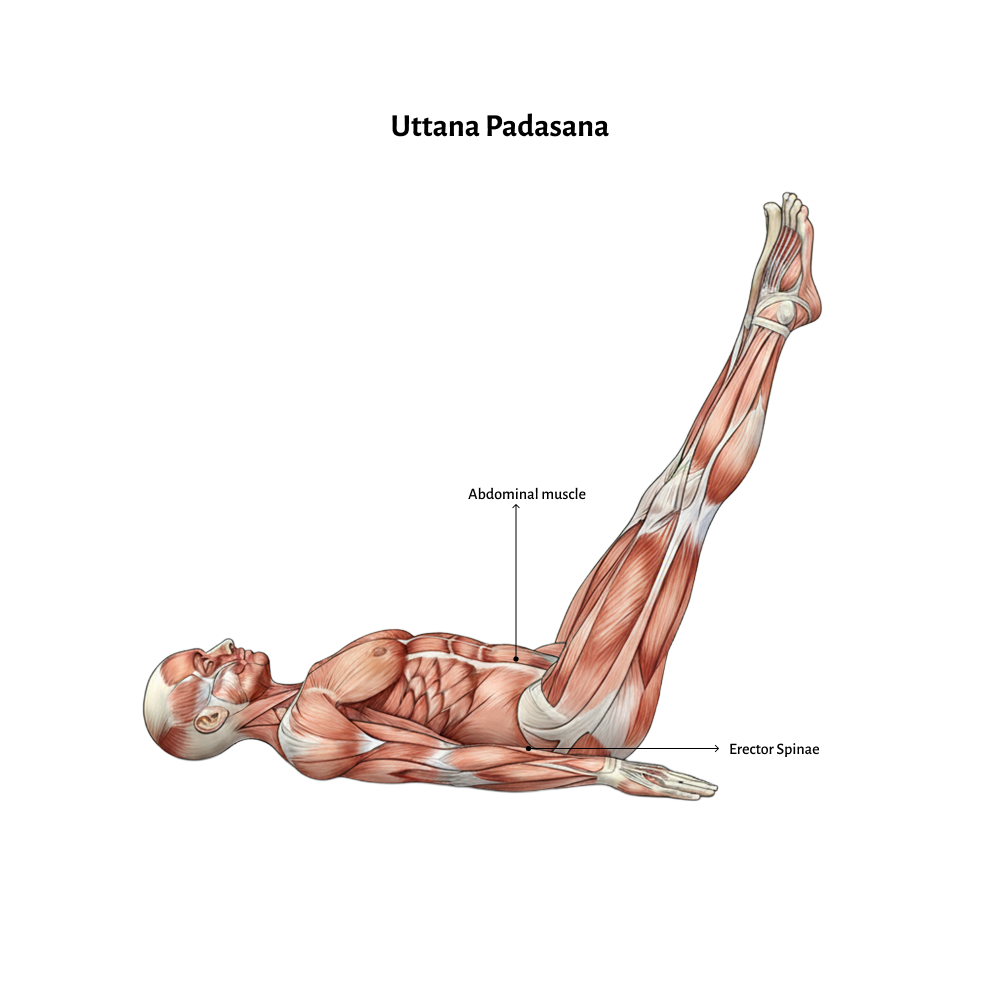 Uttana Padasana (उत्तान पादासन), or Raised Leg Pose, is a simple but effective yoga posture that strengthens the core and abdominal muscles. The name comes from the Sanskrit words “uttana” (raised, intense stretch), “pada” (foot), and “asana” (posture). This pose is an excellent way to build foundational strength in the abdominal region without putting strain on the back.